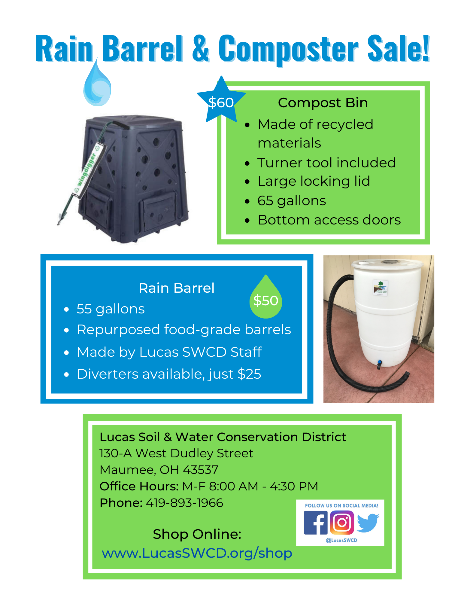Three simple ways to capture and reuse rainwater include installing rain barrels, redirecting downspouts, and planting native species in and around your garden. Rain barrels are an inexpensive way to save water, and money! Typical rain barrels have a 50-60 gallon capacity, and if used correctly, can save 1,300 gallons of water during a growing season. Rain barrels act as a personal reservoir for your home and garden needs. Anytime your garden needs a drink, simply draw water from your rain barrel! Rain barrels also have other benefits beyond saving water. Rain barrels decrease the strain on public water supply and minimize the amount of storm water runoff, often carrying pollutants, entering our rivers and lakes. To purchase a rain barrel, contact the Lucas County Soil and Water Conservation District at (419) 893-1966.